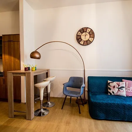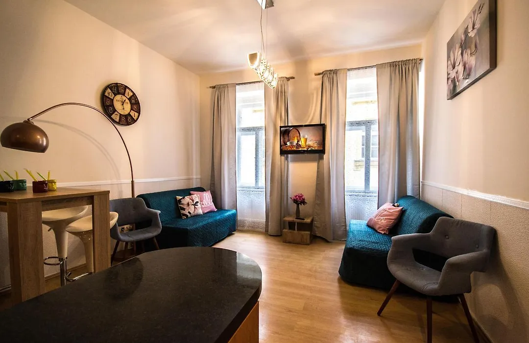 L'appartamento è dotato di servizi per la preparazione di tè/caffè e di un angolo cottura con un bollitore elettrico, un frigo e un forno. Inoltre, l'alloggio è arredato con un tavolo da pranzo. Agli ospiti piacerà la cucina francese servita al ristorante Bistro L, che si trova a circa 250 metri di distanza. La stazione della metropolitana Narodni è a 5 minuti a piedi dalla struttura, ciò offre un collegamento con zone popolari di Praga.